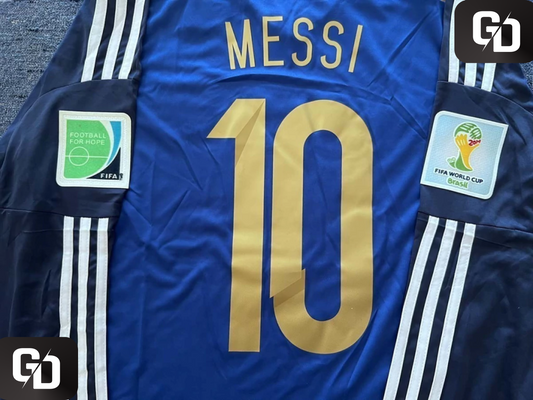 Argentina Away Retro 2014 Long Sleeves . #10 Messi. Brazil 2014 World Cup Patch